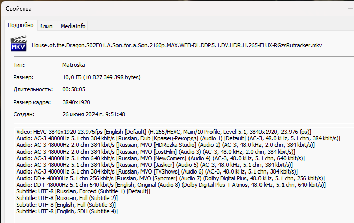 У меня стоят 2 плеера Dune: Real Vision 4K, как основной и HD Magic 4K в спальне, как второстепенный, он вообще к старому ТВ подключен с 1080р разрешением, раздачи в Dolby Vision TV стремлюсь не брать принципиально, да и постепенно их вытесняют уже универсальные раздачи и с HDR и с DV в mkv.