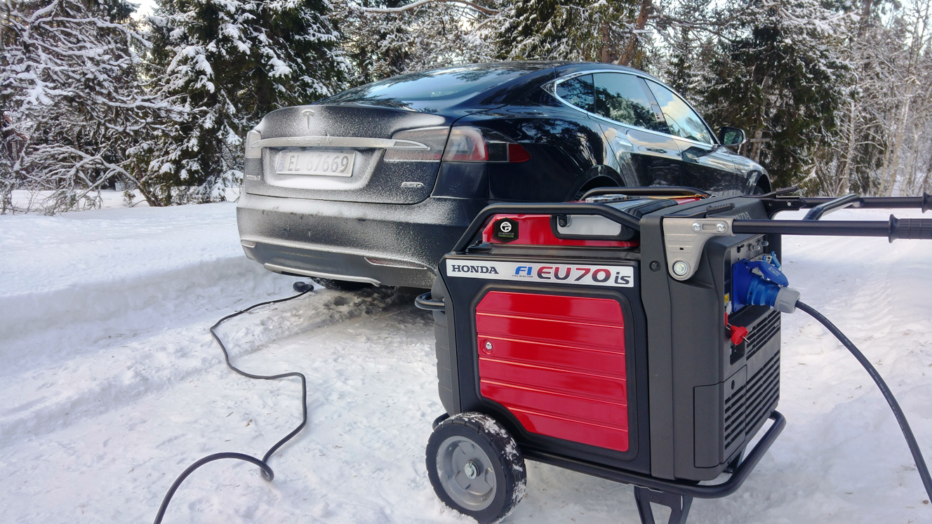 Меня больше интересует, как автор встроил дополнительный генератор в электросистему Теслы? Банально воткнул вилку для зарядки?