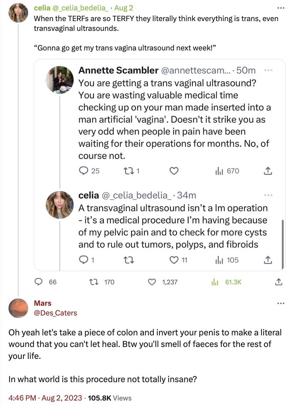 Что до трансов, то вокруг них слишком много неоправданной шумихи. В мире где-то 1/10 процента трансов, а шум вокруг них, словно они венец творения. Преследовать их, конечно, нельзя, но и создавать для них режим чуть ли не преклонения просто тупо. Элитарность меньшинств, любых, никогда не приводили ни к чему хорошему. Почему для трансов должны быть какие-то исключения? Особые блага? Особое отношение?