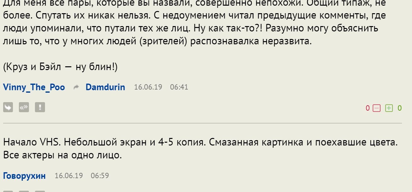 Так в чём предъявы? Я так и не знаю, что там отвечали ниже, я вступил в разговор на основе всего того, что прочитал ВЫШЕ, то есть до того. Или вы о том, что люди путают актёров, глядя на них сквозь окошечко телефончика? Но это здесь вообще ни к селу, ни к городу. Пост не об этом, по умолчанию предполагается нормальный просмотр в кино, телевизоре.