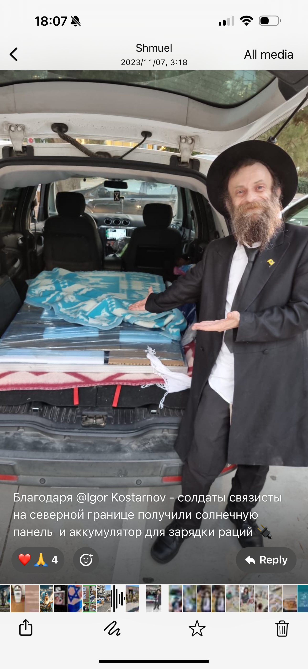 Из интерсного: я возил этим же ребятам столы и стулья (они жили в палатках, и готовить, есть и работать на земле оказалось не слишком удобно, поэтому мы отвезли им "мебель"). И все столы и стулья были переданны в специальный центр проверки прежде, чем их отдали в пользование ребятам. Я тогда удивился - чего это они проверяют, зачем стульев и столов бояться? А вот после истории с пейджерами стало понятно, почему ничего нельзя передавать в армию напрямую в части 😄