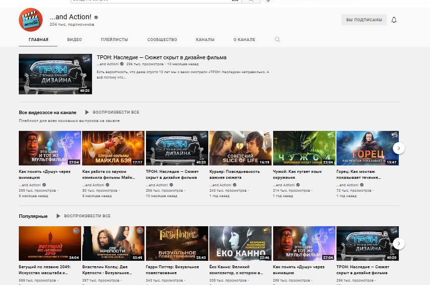 ...and Action! - видеоэссе об успешных составляющих известных фильмов и сериалов.