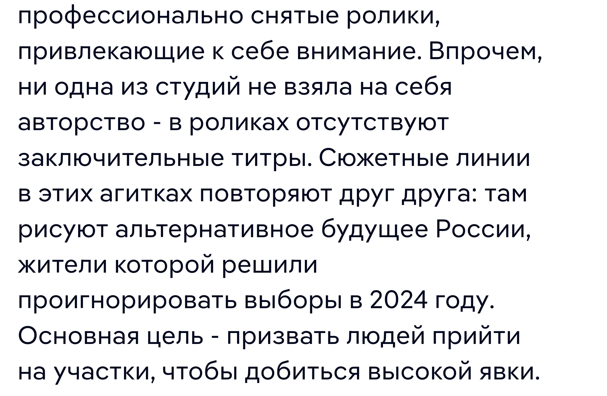 Как раз, если бы явка была очень малая, можно было бы заявить, что режим нелегимитмен. Но сейчас, когда идёт бойня в Украине, после убийства Навального, просто участвовать в выборах, значит поддерживать режим.