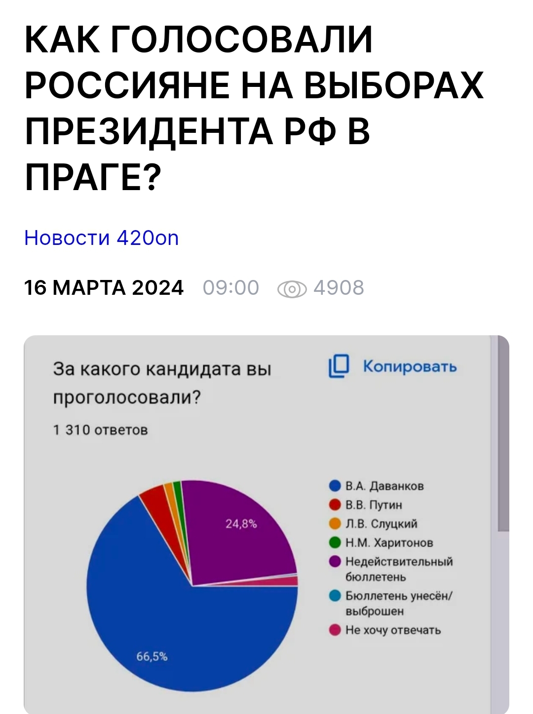 А сейчас? Роль Тихановской мог сыграть Надеждин, именно потому его не допустили. А Даванков это даже не смешно. Он получит свой 1 процент, и всем будет на это насрать.