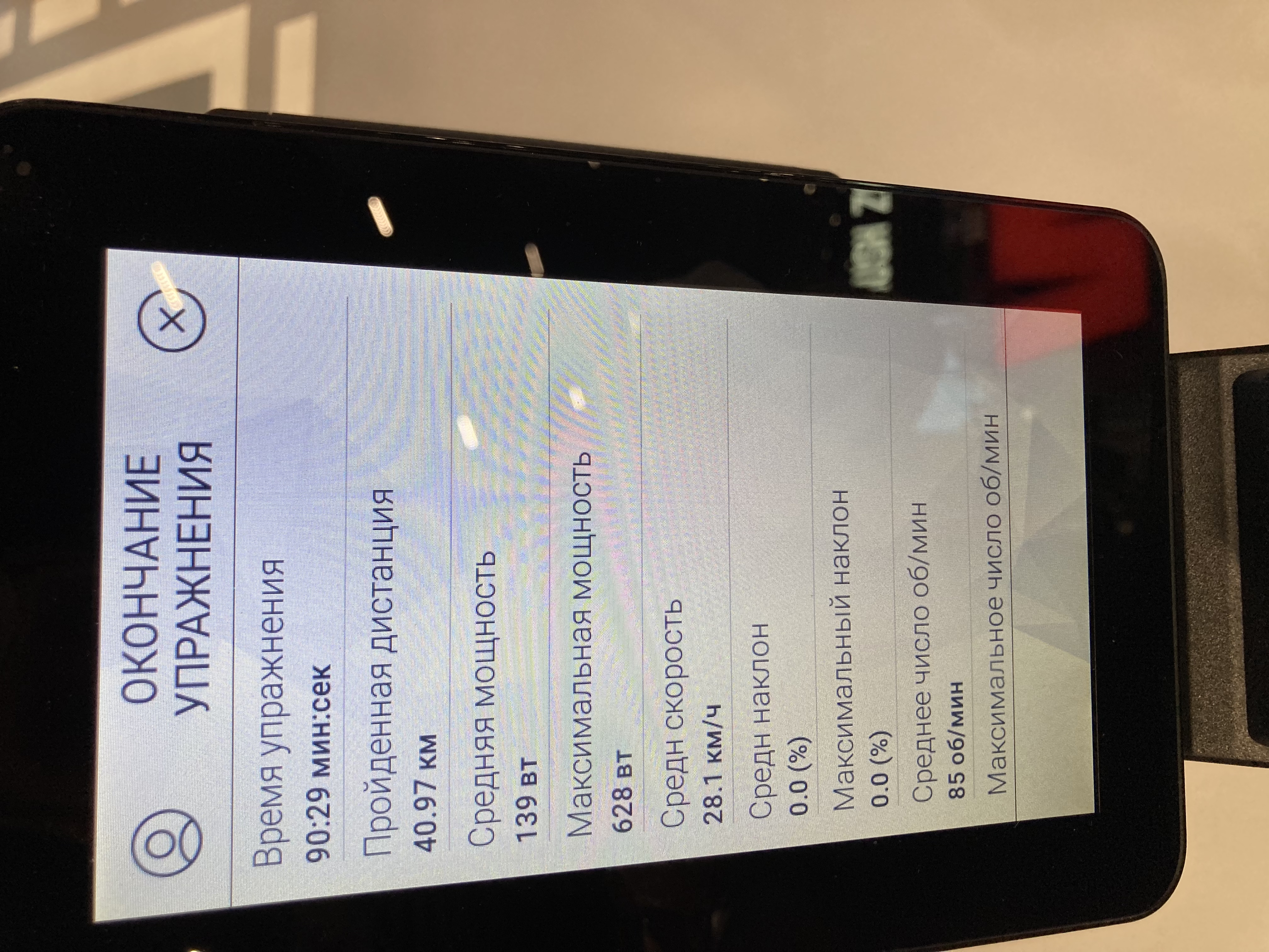 Но это тренажер, так что скорость там «идеальная в вакууме». На тренажерах правильнее на мощность ориентироваться. И на пульс. Исходя из них (мощность/пульс) — болтал ногами полтора часа); но в этом и была цель, после силовой/функциональной тренировки: сжечь немного жира