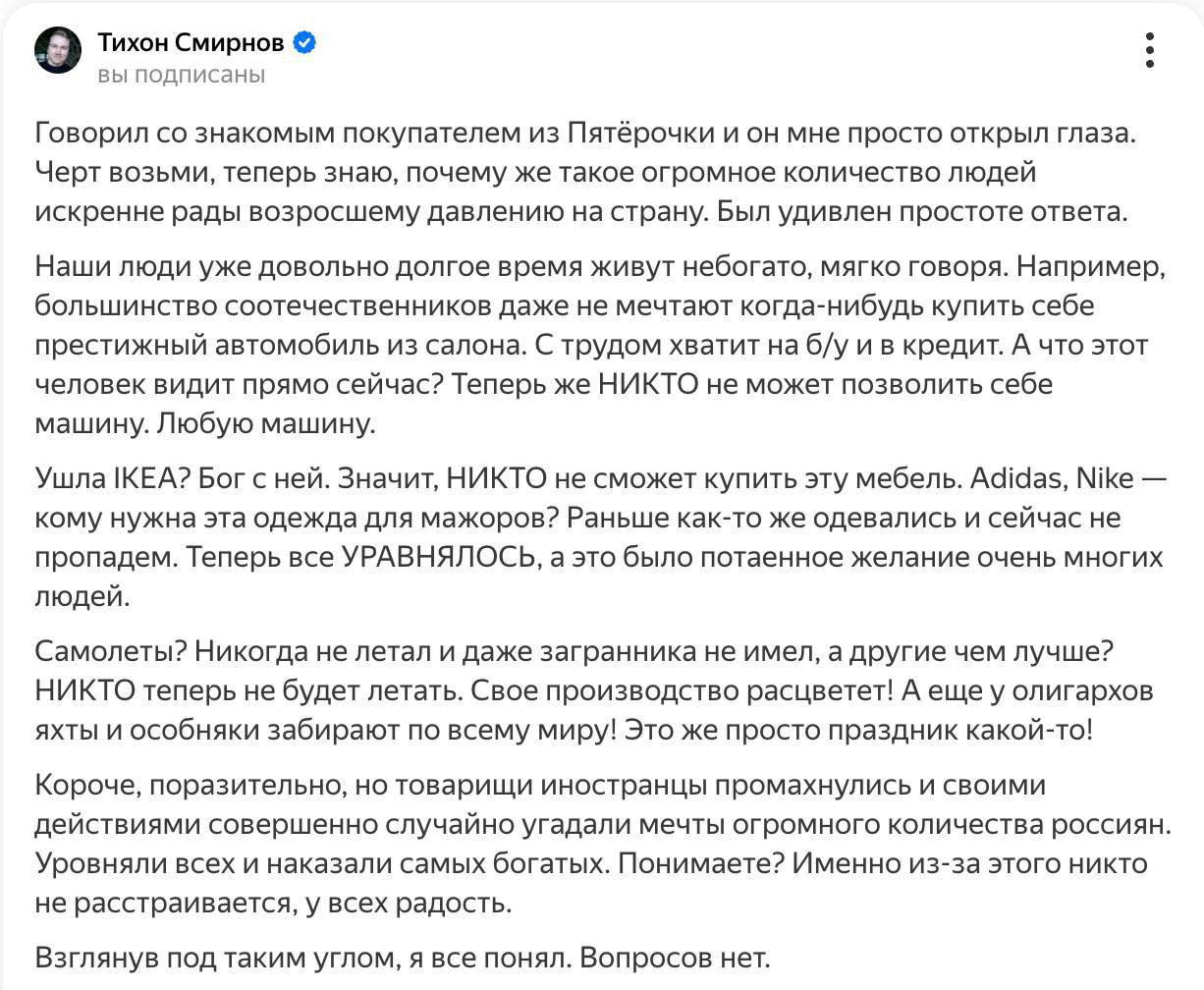 Надо еще телеге сказать, что во имя мира она блокирует все акки с русскими номерами. Вот тогда точно будем из космоса новости получать.