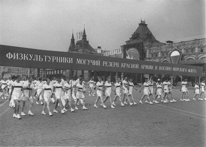 Я изложил первую, наиболее распространенную версию. Хотя физкультурники на параде ходили и в футболках и вообще с голым торсом. Но народ смотрел на физкультурниц, это был советстский аналог порнографии 30-х годов. Было таже такое: