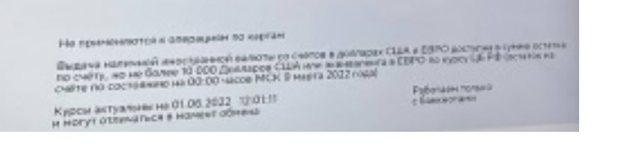 Выдача наличной валюты .... возможно только с остатка по счету не более 10000 дол. США по курсу ... с остатка на 09.03.2022 г."