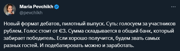 Это моё субъективное мнение. Но, соответственно, с моей стороны ни о какой поддержке никаких проектов, так или иначе, прямо или косвенно связанных с А .Венедиктовым, речи не было, нет и быть не может. Я не подавал алкашам, ибо не хочу, чтобы мои деньги пропивали. Соответственно, я не хочу, чтобы на мои деньги жили рябцевы и лазерсоны. И бесновались в эфире максимышевченки, например...