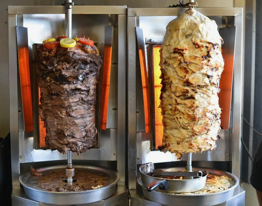 А в ресторане это будет мясо с гарниром и салатами на тарелке, поданное с хлебом и соусами отдельно. И все это нормально естся вилкой и ножом.