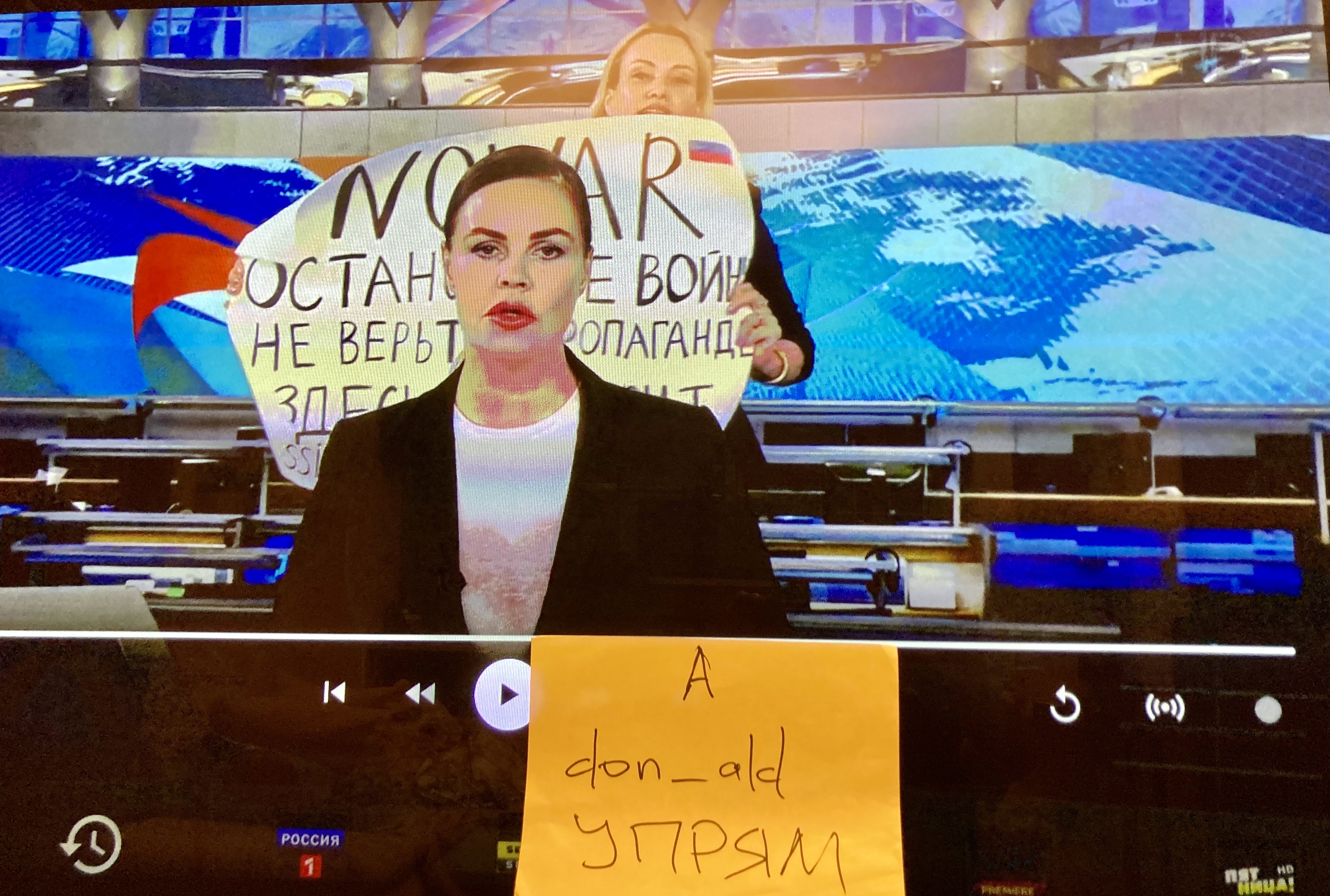 Главное: показала миру, что русские женщины со времён Некрасова практически не изменились. И не только коня, но и пропагандистскую машину может остановить. И не только в горящую избу, но и в охраняемую студию войти.
