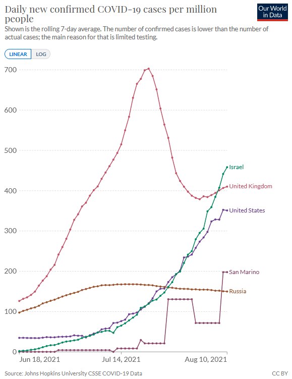 Вывод: или теория "Крепенького миллиона" не верна. Или РФ - есть какой-то аномальный участок распространения короны.