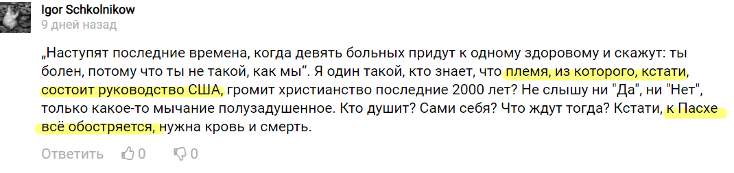 Тем более, что у РПЦ куча косяков реальных, за которые данная контора действительно достойна всяческого порицания (и это ещё мягко говоря, без мата)). Но вот именно эта "персонажка" – уже как минимум вторую тему подряд зачем-то пытается раскачивать именно "анти-исламскую" линию. Исключительно потому её и заприметил. ))