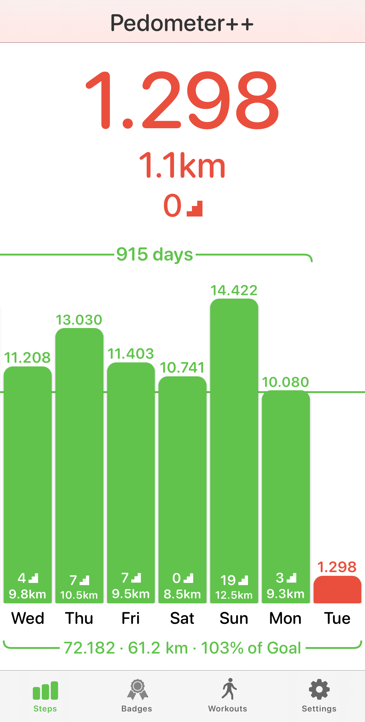 Где оно столько шагов набирается, я вообще в непонятках. Притом, что шаги у меня на таких отрезках довольно не маленькие и походка бодрая.