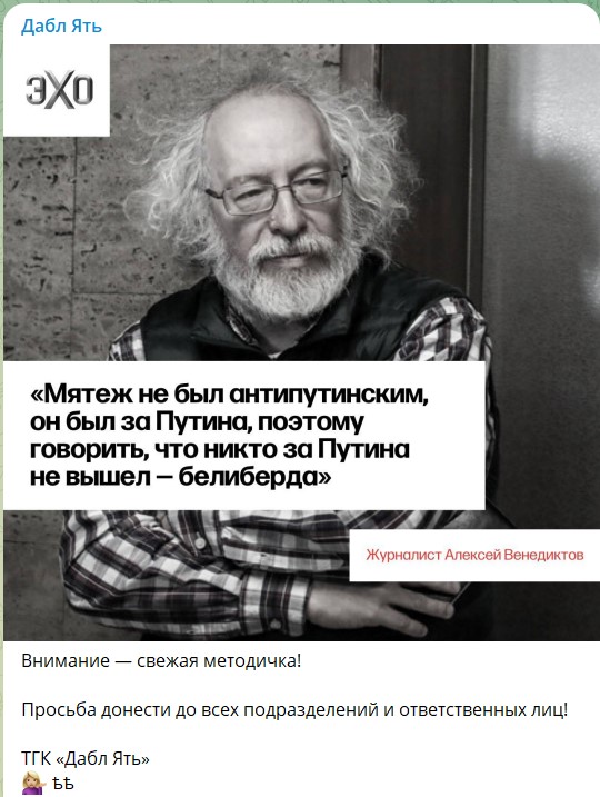 Он обращает внимание, что это не антивоенный бунт, как многим (?) хотелось бы представить, и не против верховной власти.