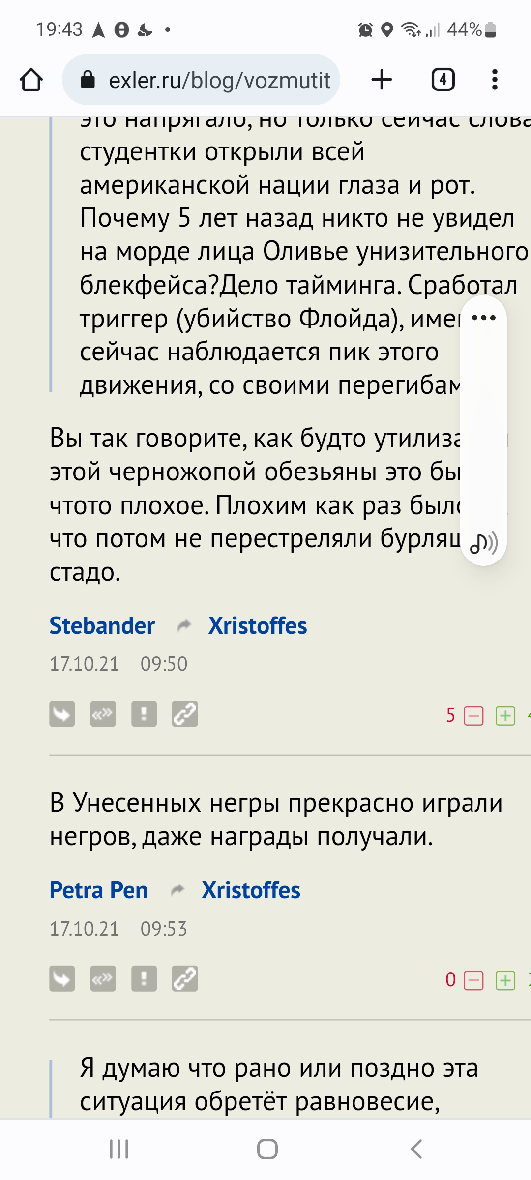 "Вы так говорите, как будто утилизация этой черножопой обезьяны это было чтото плохое. Плохим как раз было то, что потом не перестреляли бурлящее стадо."