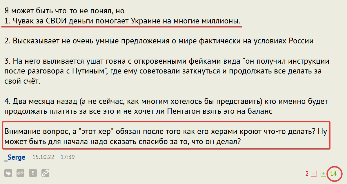 P.S. Вот что баксы животворящие делают. Контрактики в будущем планирует с Мордором... Вперёд, Илон, повар Женя этим путём уже ходил. Плешивая банда не простит выполнение секретного контракта Пентагона, в результате которого украинцы сорвали их планы.