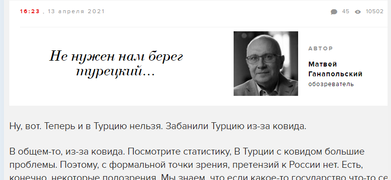 И да, почему то мне кажется, что когда народ в Туретчине поперезаражался бы, Алекс был бы в первых рядах пинающих за это Российские власти.