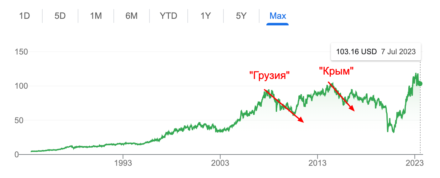 на картинке - стоимость акций нефтегазовой компании Exxon Mobil