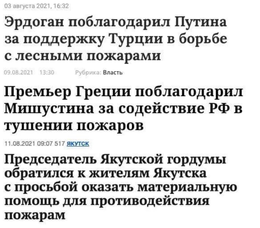 А то, что наши ради геополитического пиара могут и пожары тушить помогать, и военных на борьбу с коронавирусом отправлять - оно, конечно, печально, но эта традиционная забава властных идиотов, как для царской России, так и для СССР. Не дороги же строить в Мухосранске? Неинтересно, пиара не сделаешь..