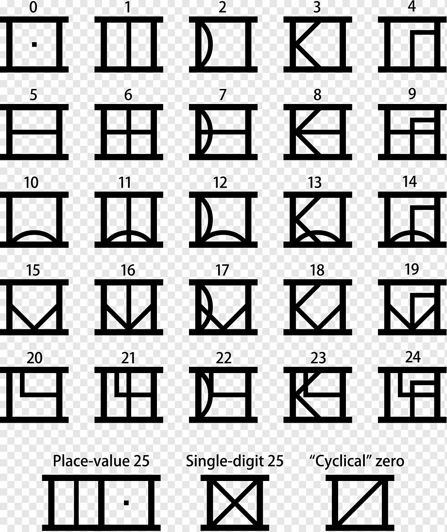 А поворот двойки на 90 градусов (пяти основная система, разряд увеличивается поворотом) и нарисованная в ней же единица (то есть двузначная цифра) - это уже число 11.
