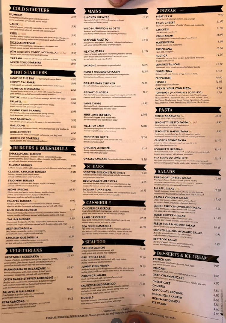 Меню не видела, там судя по всему всякое разное есть, но самая соль там - заказать "serpme kahvalti", это сет где будет все, что можно себе представить из турецкого завтрака. Овощи, фрукты, сыр, яйца, колбаса, овощи, фрукты, выпечка, варенья, сладости. Чай тоже дают. Сет на двоих просто неимоверных размеров, мы съели в два раза больше, чем нужно и еще масса всего оставалось.