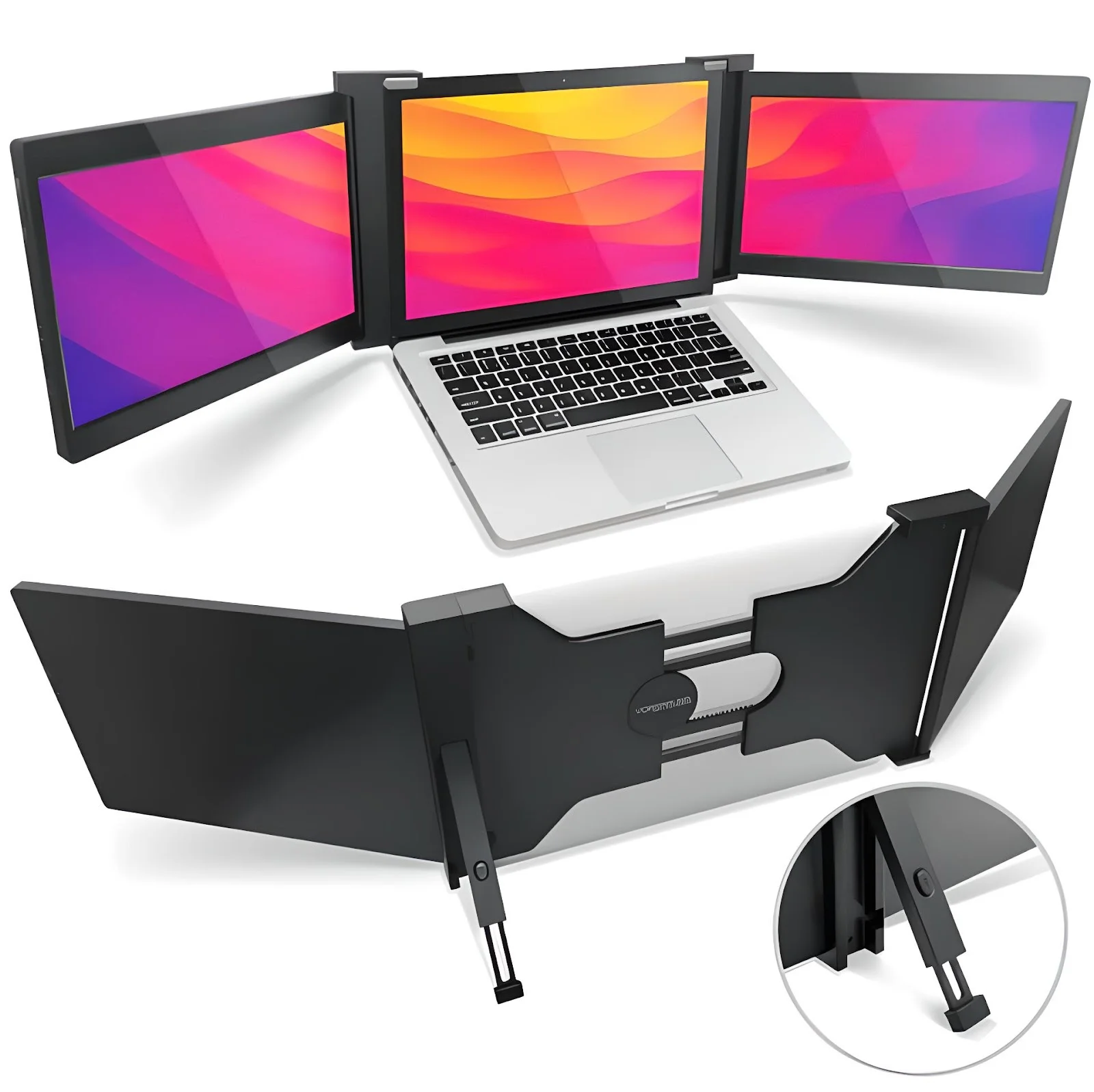 Соответственно основное использование - как второй монитор к ноуту (внешний монитор имеет ширину-длину аналогичного размера ноута, но легче и тоньше, т.е. спокойно влазит в рюкзак вместе с ноутом), в т.ч. с возможностью сделать систему на 2 монитора без питания от розетки.