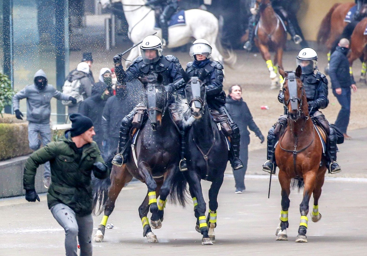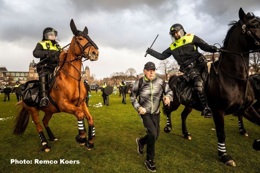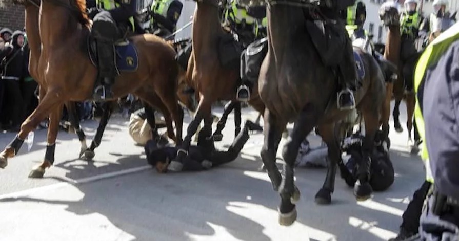 В несанкционированном митинге были замечены всадники на лошадях. 😄