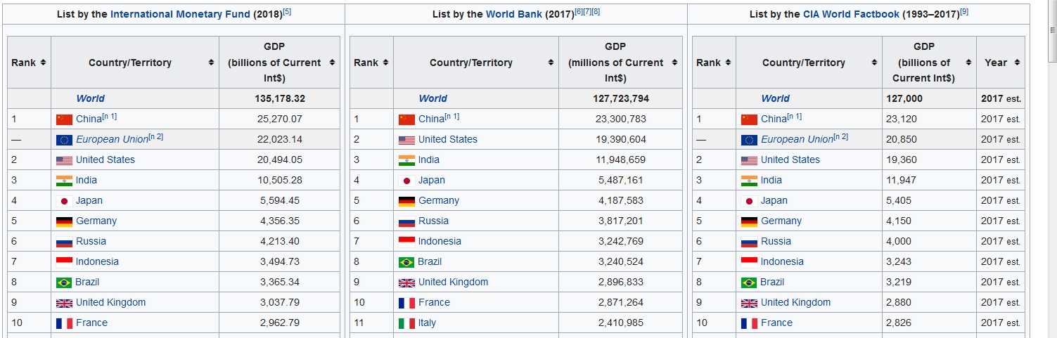 вот есть три разных источника GDP per capita, и что то не могу найти в первой пятерке