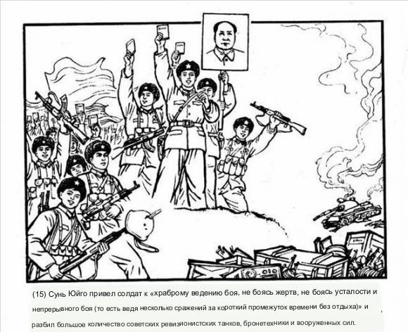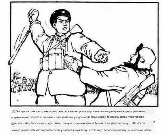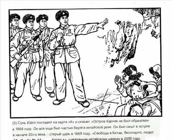 Кемскую волостьостров Даманский возвращают в родную гавань.Сначала сборище бородатых бродяг в дубленках пришли на китайскую землю, полезли в драку, а потом, собрав выбитые зубы, решили взять хитростью и начали переписывать историю. Когда этот номер не прошел, то поехали на китайских бойцов железными танками, но китайские бойцы с пулеметами и гранатолупами пожгли те танки, и так правда победила.