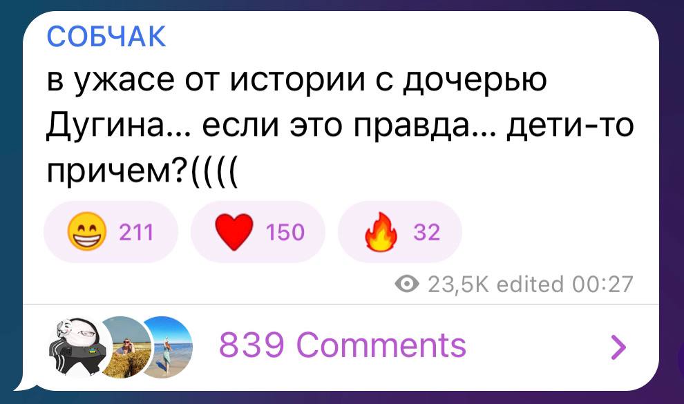 Да, в версию о сакральной жертве и ФСБ я не верю. Слишком сложно и ненадёжно в плане последствий. И в украинский след верится с трудом. Может быть это действительно внутревидовые разборки, объедки со стола не поделили?