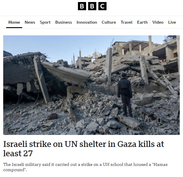 ■ ВВС: "В результате удара Израиля по убежищу ООН в Газе погибли по меньшей мере 27 человек".