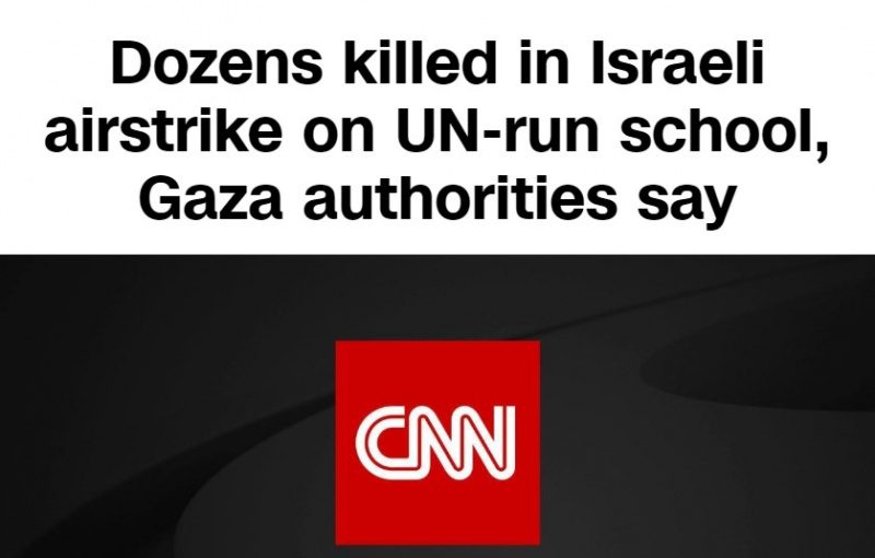■ СNN: "Власти Газы заявляют, что в результате авиаудара Израиля по школе, находящейся в ведении ООН, погибли десятки человек".