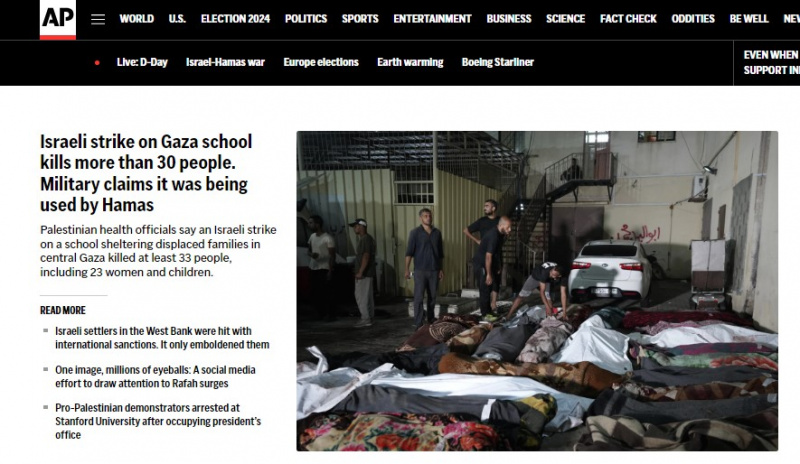 ■ АP: "В результате удара Израиля по школе в секторе Газы погибло более 30 человек. Военные утверждают, что ее использовал ХАМАС".