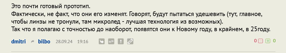 Так что я полагаю с точностью до наоборот, появятся они к Новому году, в крайнем, в 25году.
