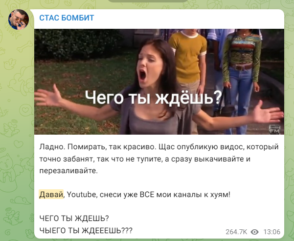 Этого деятеля ни разу не жалко, но интересно, почему он не перешел на Тикток?