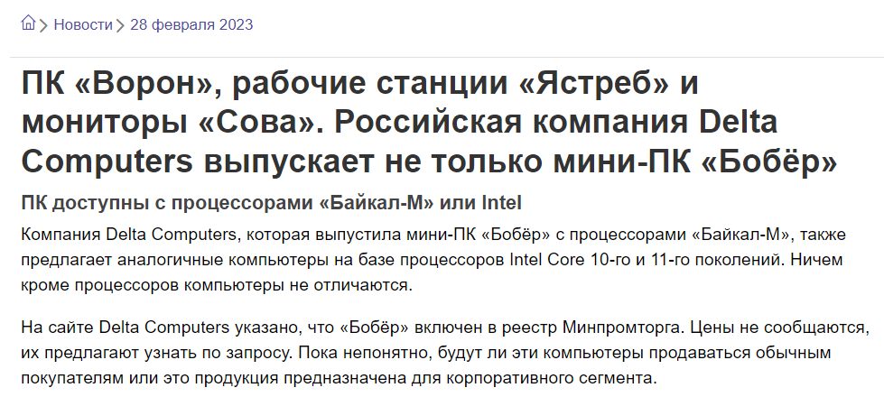 А то, что там в рамках промышленного шпионажа тырили с опозданием в 5-10 лет, не есть свои компьютеры