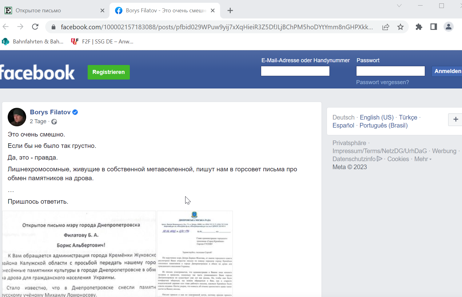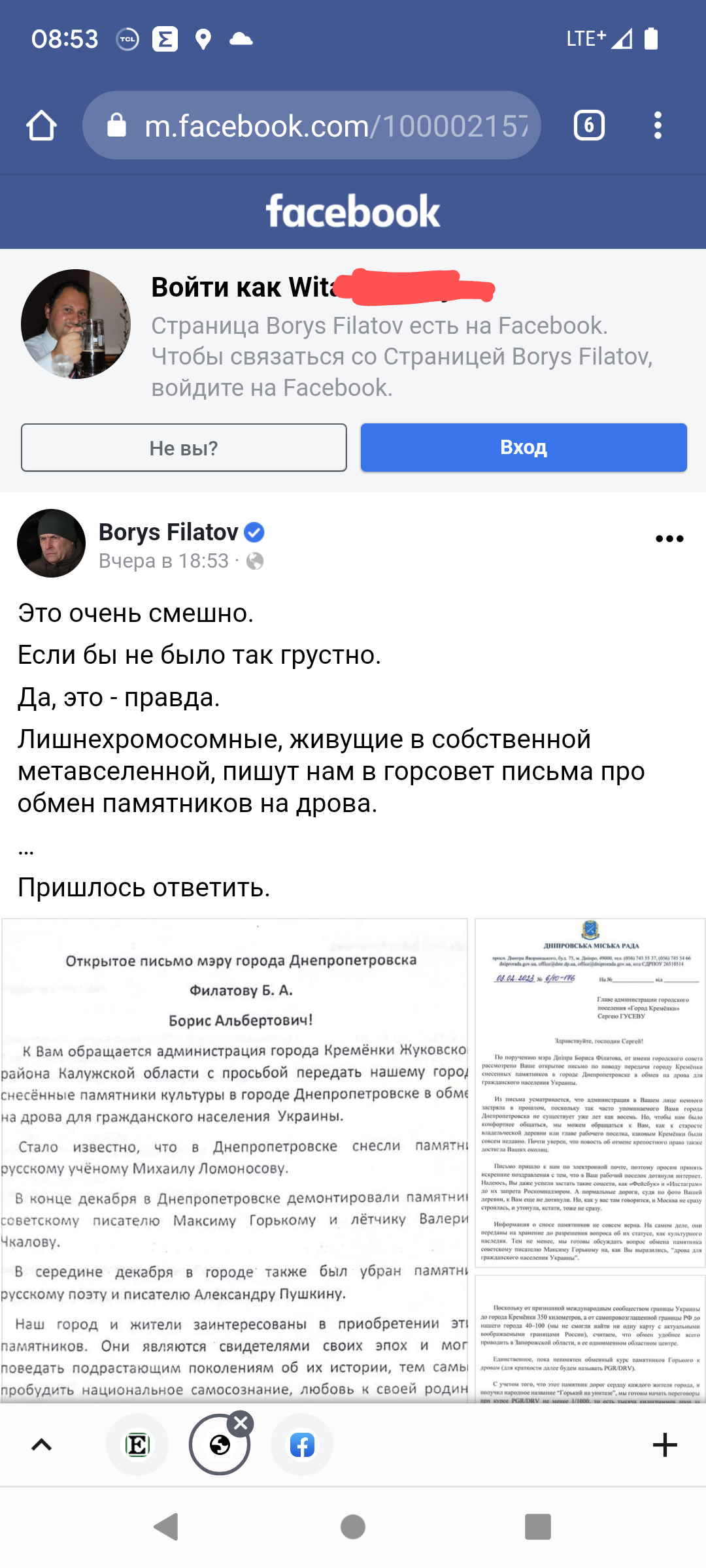 2. Никто официальные документы в мордокниге не давал официальный ответ на письмо. Просто у Бориса Филатова есть там аккаунт. В одной из записей он подтверждает, что такое действительно произошло.