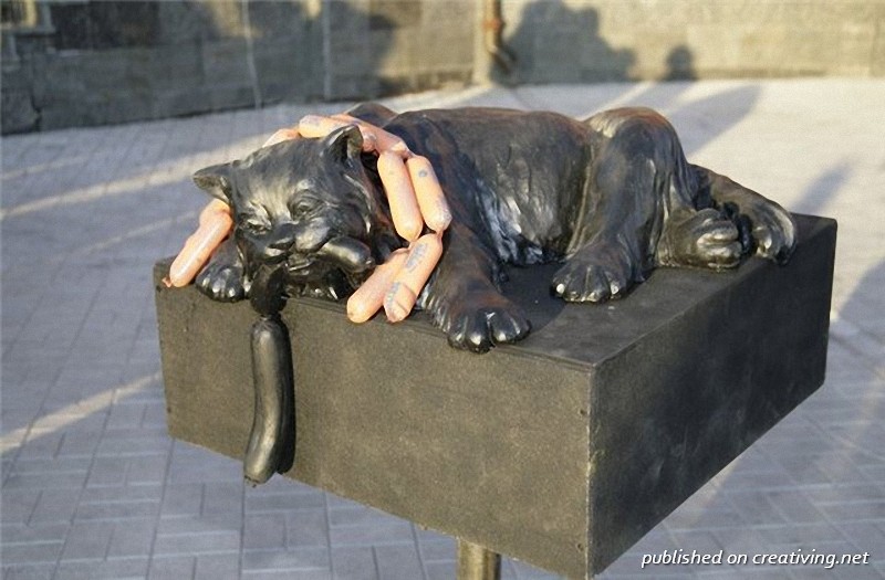 Автор скульптуры имеет весьма расплывчатое представление о кошках.