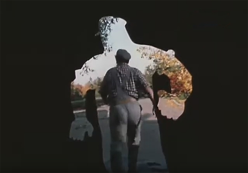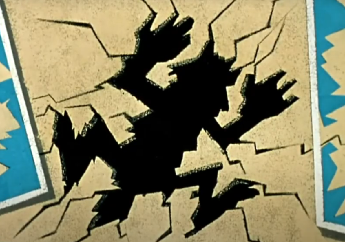 И что до неряшливости исполнения, угловатости и прочего: неряшливо-грубая поверхность и плиты на стене, в которую он уходит, не вызывают никаких мыслей? И что единственный еще гладковато-реалистичный элемент (ьоже постепенно "обнеряшливающийся") – это его портфель, тоже ни о чем не говорит?