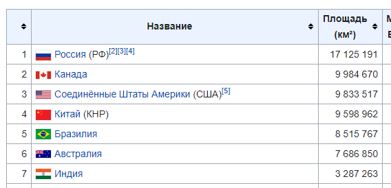 Это правда включая Республику Крым (26 081 км²) и Севастополь (864 км²), присоединение территорий которых не получило международного признания; без них — 17 098 246 км², что все равно первое место