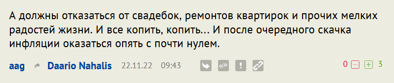 Нет уж, в силу бесполезности «занятий политикой» в текущей российской действительности, есть смысл заниматься экономикой. А именно — самим обеспечивать себе старость тем или иным способом. При этом минимизируя уплату налогов этому государству, которое развязывает на деньги своих граждан агрессивные войны и считает пенсию льготой, которую оно будет раздавать по своему усмотрению.