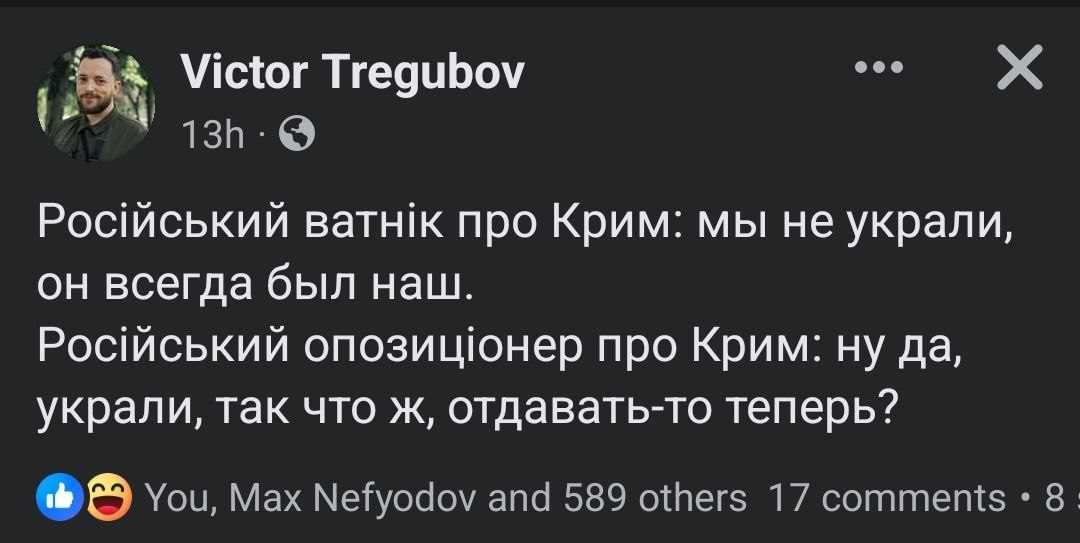 Вообще у российских "либералов" не в моде признавать, что российское общество сгнило ещё минимум 10 лет назад и именно поэтому в России ликовали "Крым наш" и радостно паковали чемоданы в Алушту. Хотя весь развитой мир просто офигел, что в 21 году можно просто взять и силой отжать у соседей регион. Но россиянам это норм.