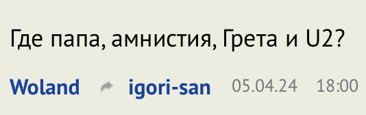 Вот, в том числе, из-за таких "любителей русского рока", это "СВО" и происходит.