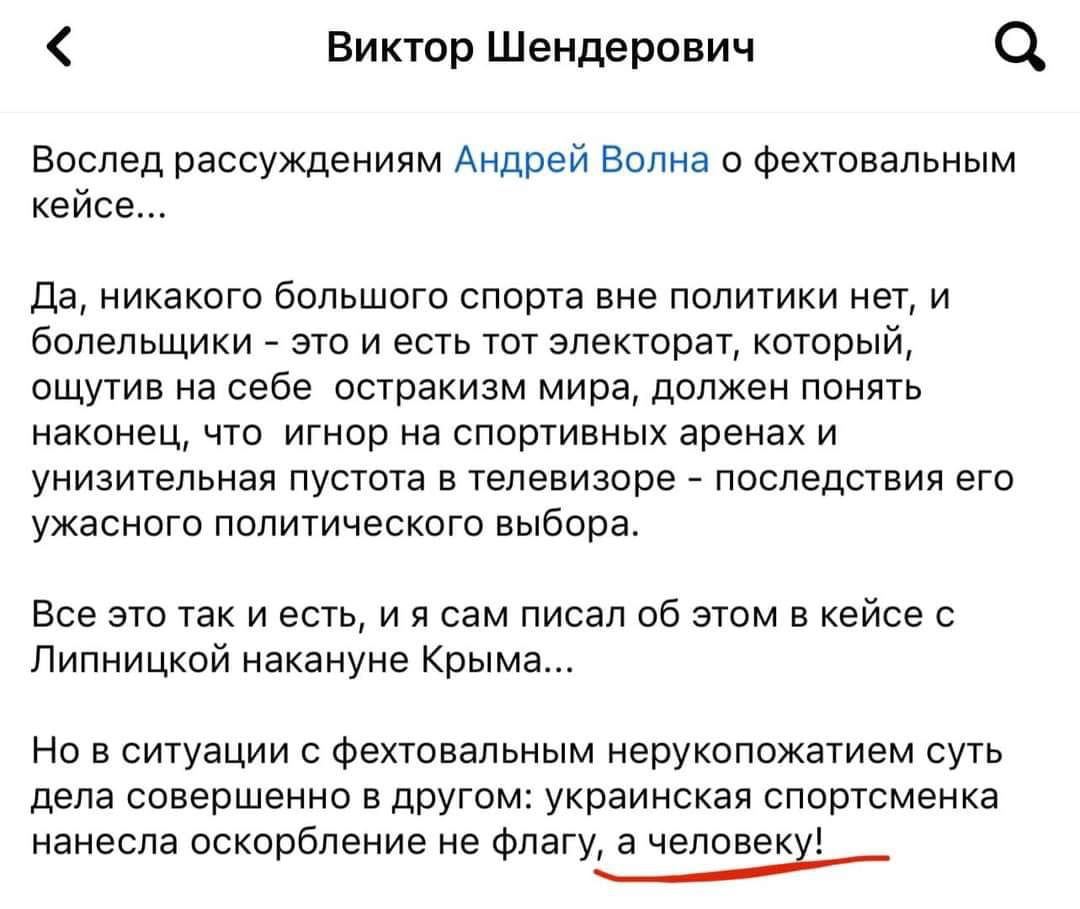 Правда, продолжая отстаивать "а вот нельзя оскорблять тех, кто лично Путина и войну не поддержал", а "шутливая фотография в армейской шапке брата не является свидетельством пропутинской позиции саблистки".