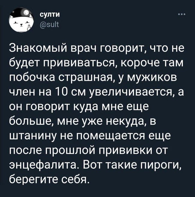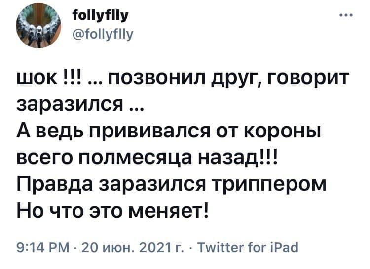 P.S. Именно из-за таких дебилов РФ уже "доигралась" фактически до третьей волны. Причины моей злости должны быть понятны любому мыслящему человеку (хотя бы надеюсь на это).
