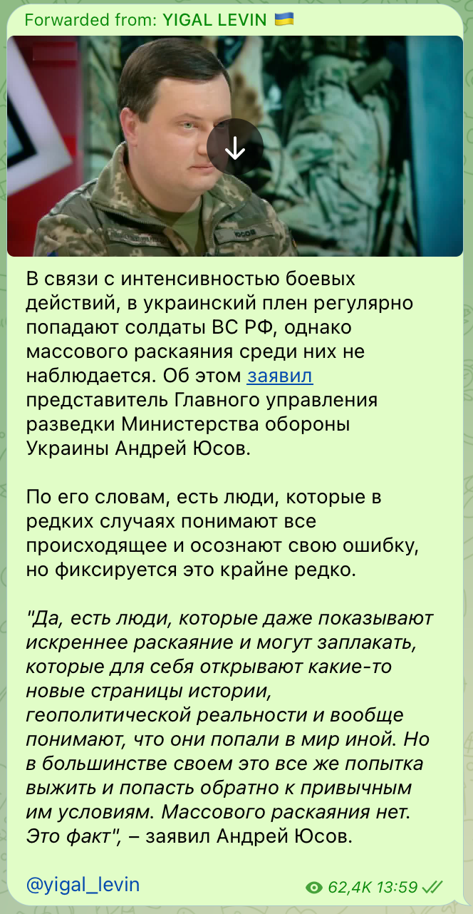 Да и те, кто в окопах, они на самом деле против войны. Они ее не поддерживают, просто не хотят об этом говорить.