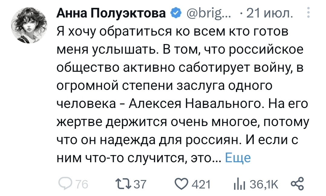 Всё же в который раз убеждаюсь, что настоящие жертвы этой войны - несчастное население России минус Путин и ещё несколько человек, творящих всё это.