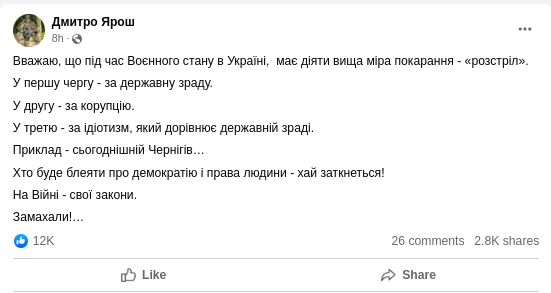 Теперь, некоторые россияне хотят ликвидации режима Путина. Это модно сделать лишь когда он потерпит военное поражение. Это не значит, кстати, что режим рухнет совершенно автоматически, но это необходимое условие.