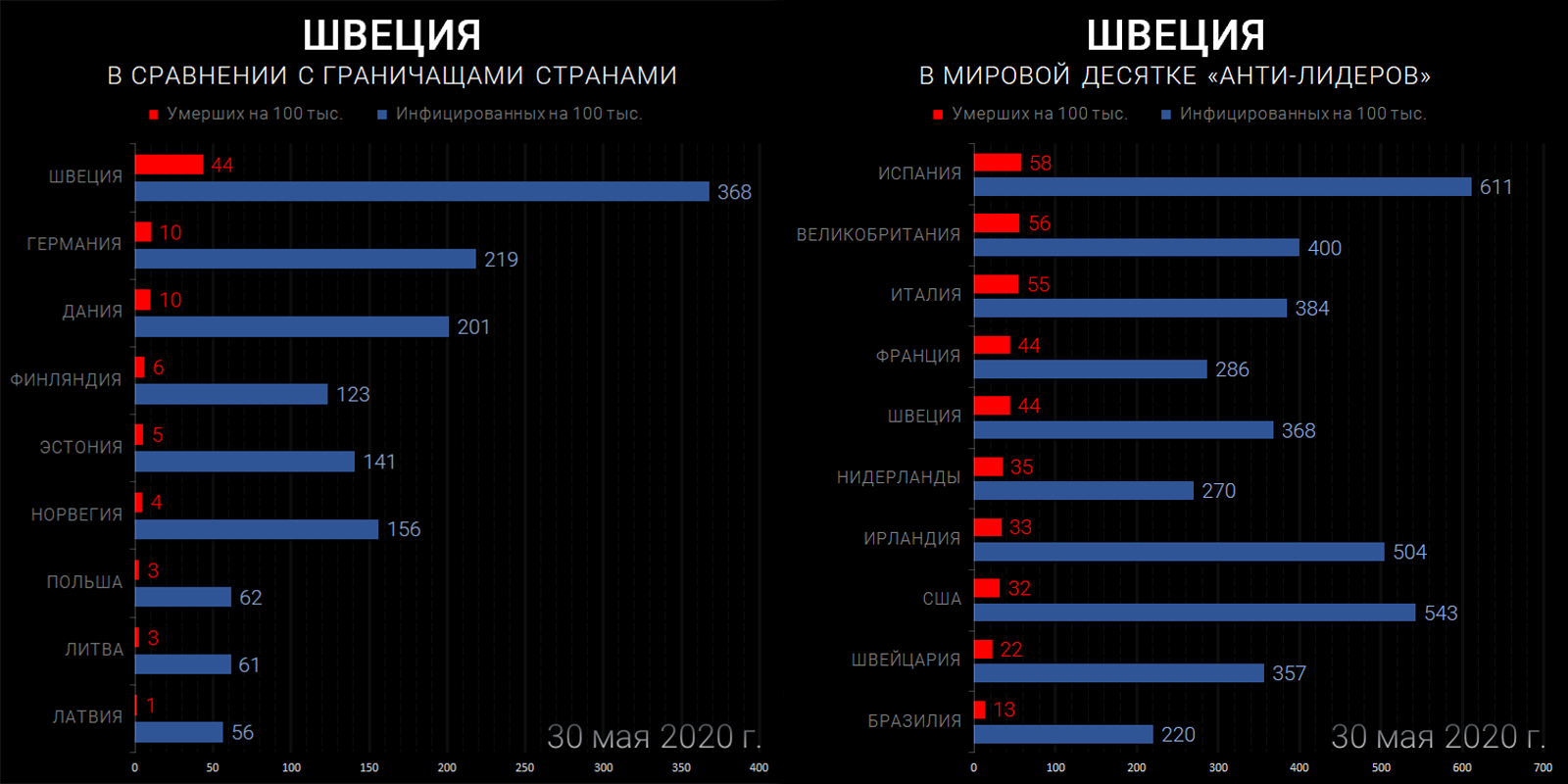 Равно как опровергается и не менее задолбавший миф (причём, придуманный самими же противниками карантина, это отдельно доставляет))), что доказательством ошибочности шведского решения якобы могут быть лишь буквально "горы трупов на улицах". Видимо, данную публику способны убедить исключительно настолько наглядные картинки "как в кино"...
